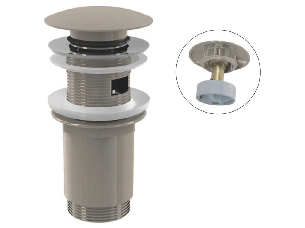ALCA Výpust umyvadlová CLICK/CLACK G 5/4" s přepadem, velká zátka, kov, NICKEL-lesk A392-N-P