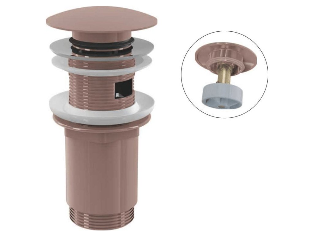 ALCA Výpust umyvadlová CLICK/CLACK G 5/4" s přepadem, velká zátka, kov, RED GOLD-kartáčovaný mat A392-RG-B