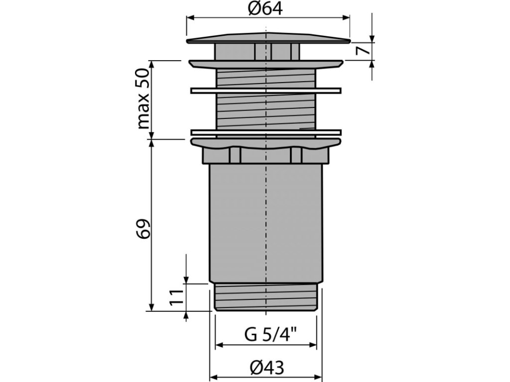 ALCA Výpust umyvadlová G 5/4" pro umyvadla bez přepadu, velká neuzavíratelná zátka, kov, chrom-lesk A396
