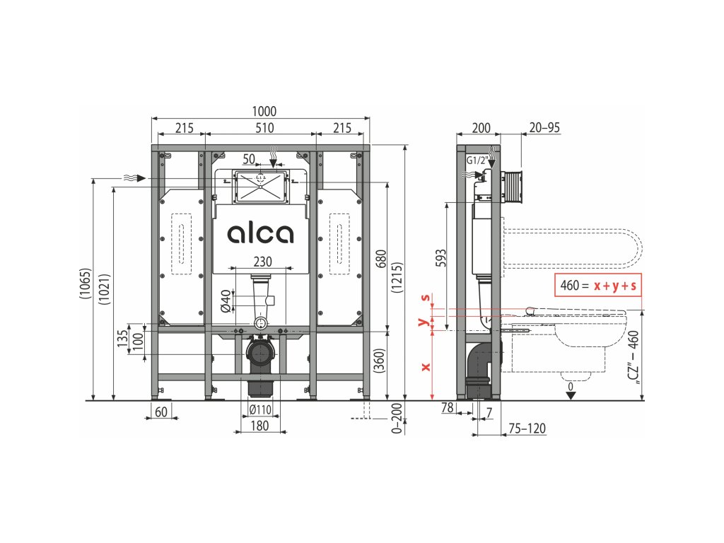 ALCA WC modul pro suchou instalaci (do prostoru), samostojící – pro osoby se sníženou schopností pohybu AM116/1300H