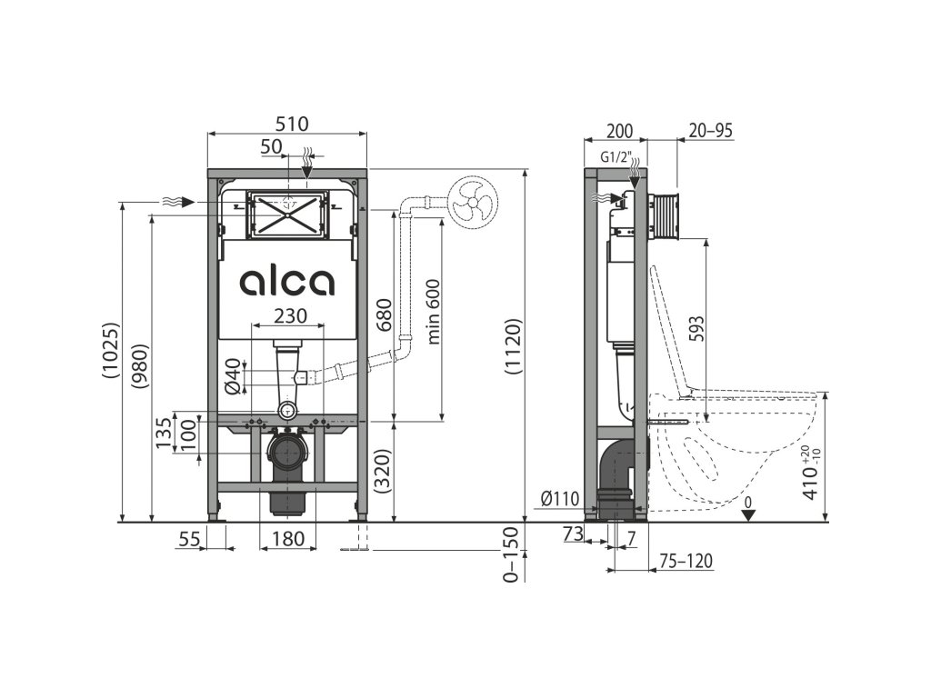 ALCA WC modul pro suchou instalaci (do prostoru), samostojící AM116/1120