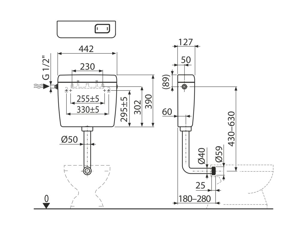 - Splachovací set pro nízko položenou nádržku (tlačítko)