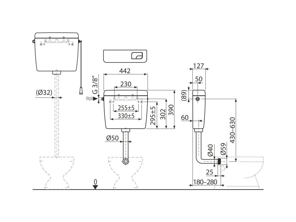 | Při instalaci na vysoko položenou nádržku je funkční pouze velké spláchnutí: | 6 - 8 l |