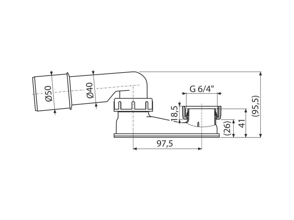 ALCA Zápachová uzávěra snížená pro vanové sifony G 6/4" × DN 40/50 A532-DN50