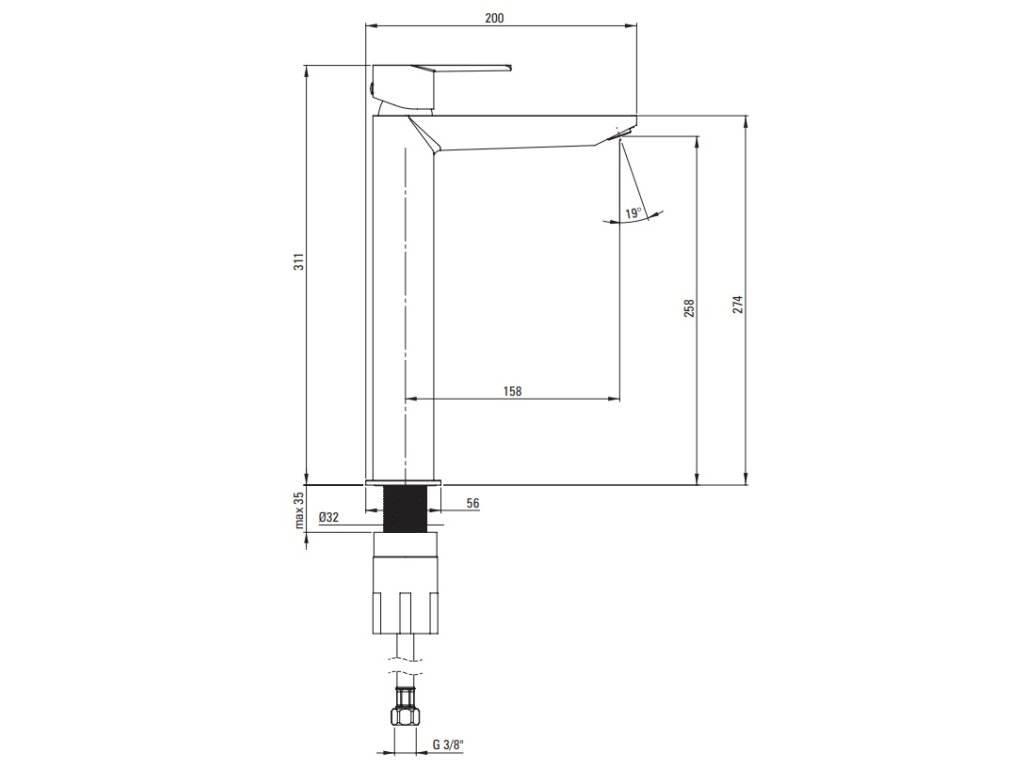 Aplomo Agawa umyvadlová baterie, vysoká, BQG_020K