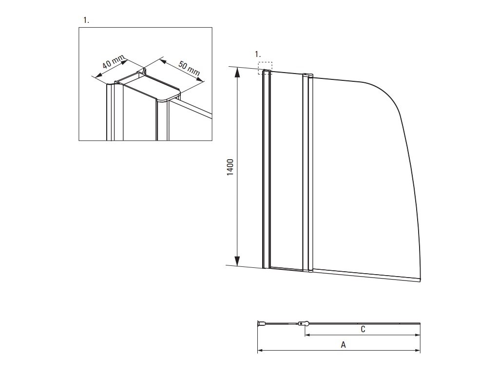 Aplomo Alpinia 115x140 jednodílná vanová zástěna, KGA_073P