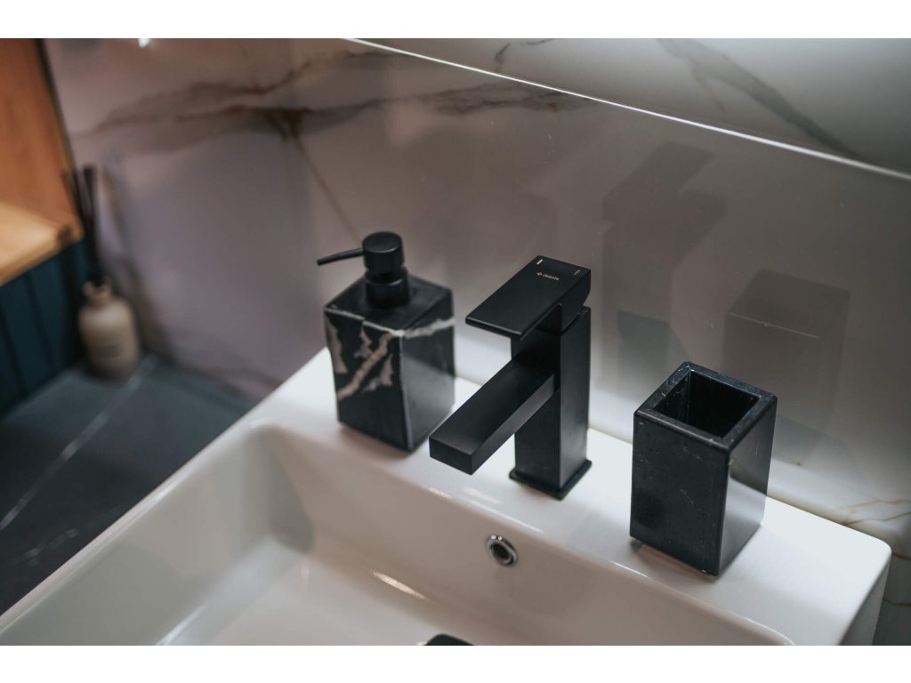 Stojánková umyvadlová baterie z kolekce Anemon Bis v černém elegantním saténovém provedení je vynikající volbou pro moderní koupelny, jejichž uživatelé mají rádi kubistické tvary a výrazné akcenty v interiéru. Elegantní umyvadlová baterie zaujme na první pohled svým kubickým tělem a plochým povrchem páky, které dokonale ladí s ostatními prvky kolekce Anemon Bis. Tyto baterie se vyznačují geometrickými tvary a ostrými, rozhodnými liniemi, které v kombinaci s matně černou povrchovou úpravou senzačně doplní moderní, industriální nebo skandinávské uspořádání koupelny a skvěle vypadají na pozadí dřevěných, kamenných pracovních desek nebo minimalistických bílých obkladů.