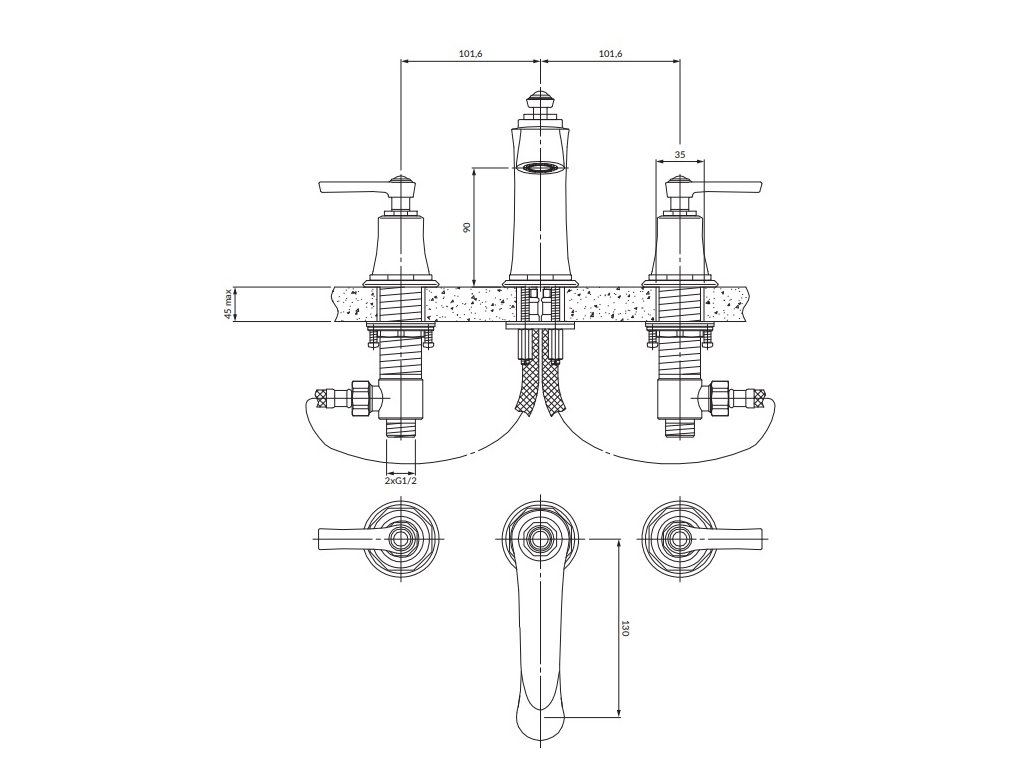 Popis tříotvorové umyvadlové baterie Armance