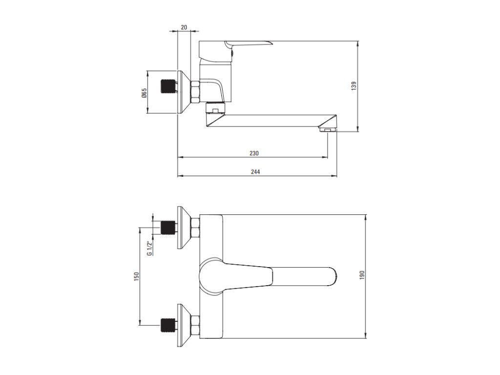 Aplomo Corio nástěnná umyvadlová baterie s dlouhým ramínkem, BFC_050M