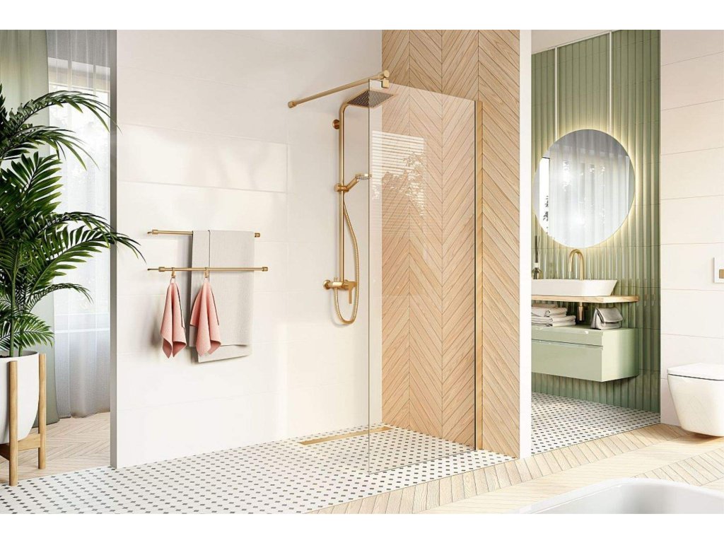 - designový sprchový kout Walk In se zlatými profily