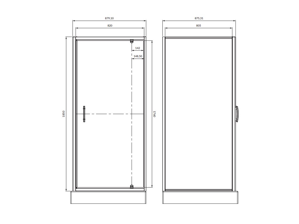 Tabulka rozměrů sprchového koutu Esso