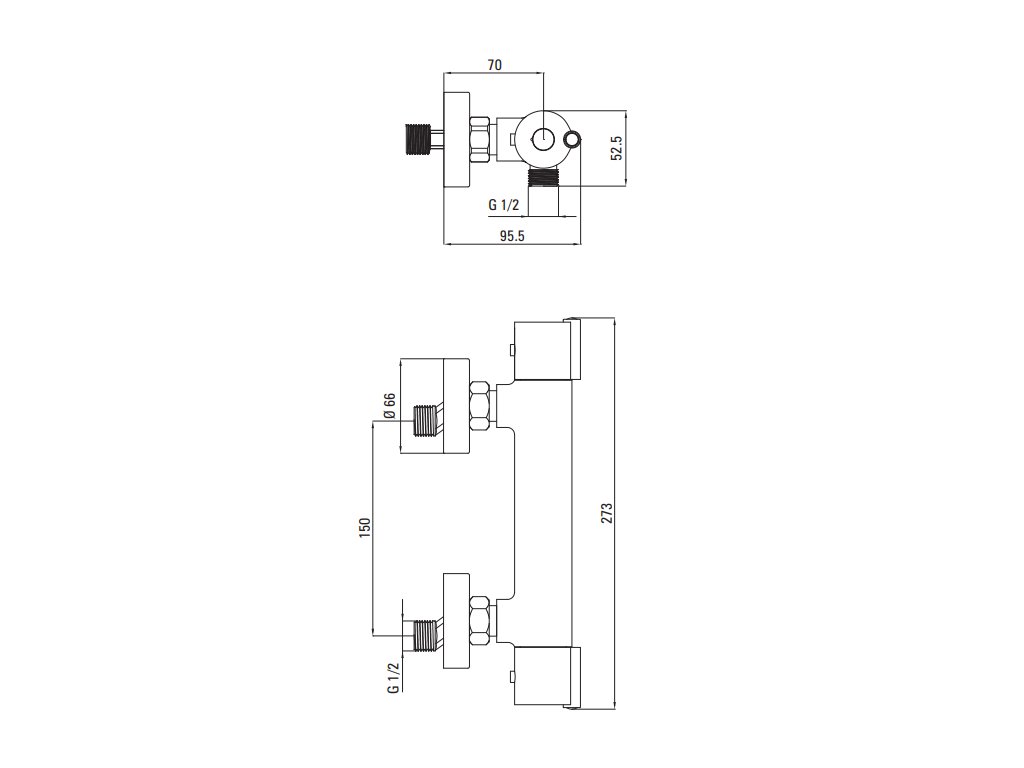 Kohoutek je vybavený zpětnými ventily, aby smíšená voda nevytékala zpět do systému.