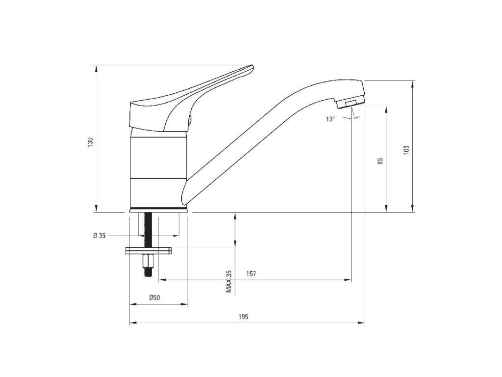 • prakticky řešená páčka pro regulaci teploty, spuštění a uzavření vody