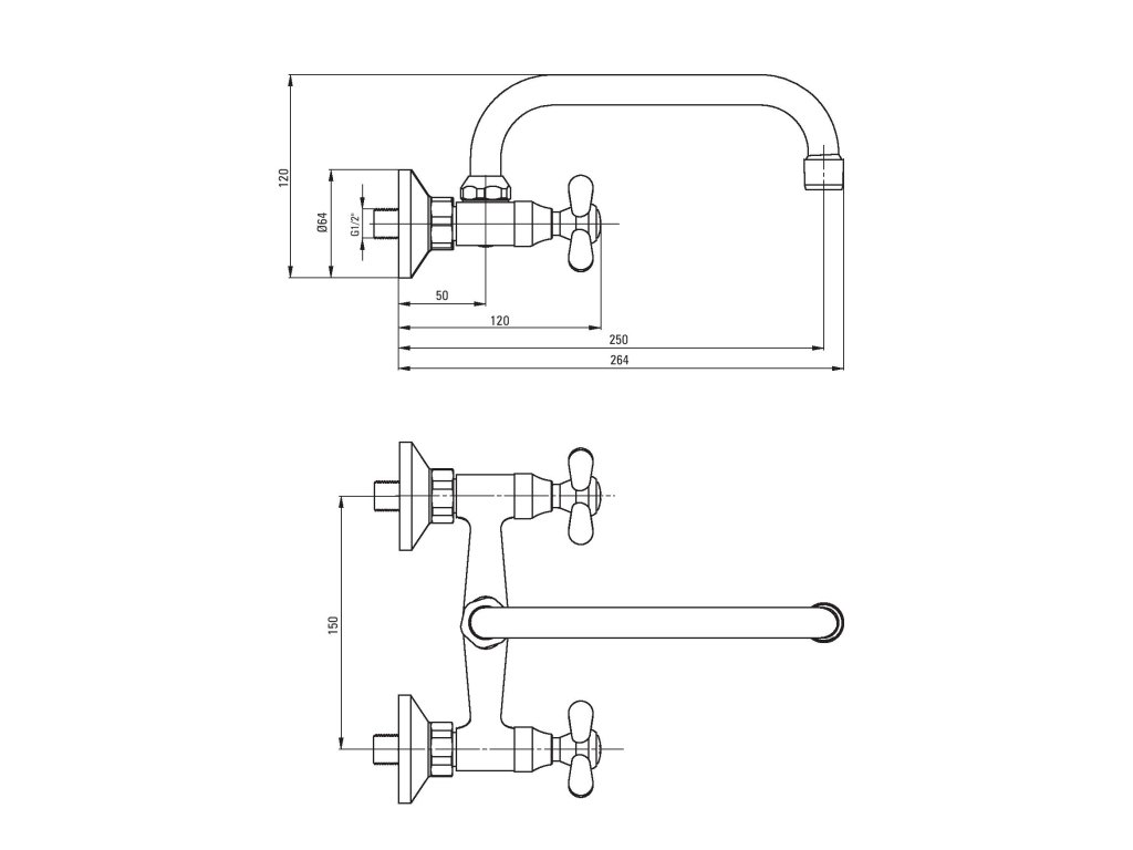 Aplomo Klasik umyvadlová/dřezová baterie s vrchním U ramínkem, BOS_050D