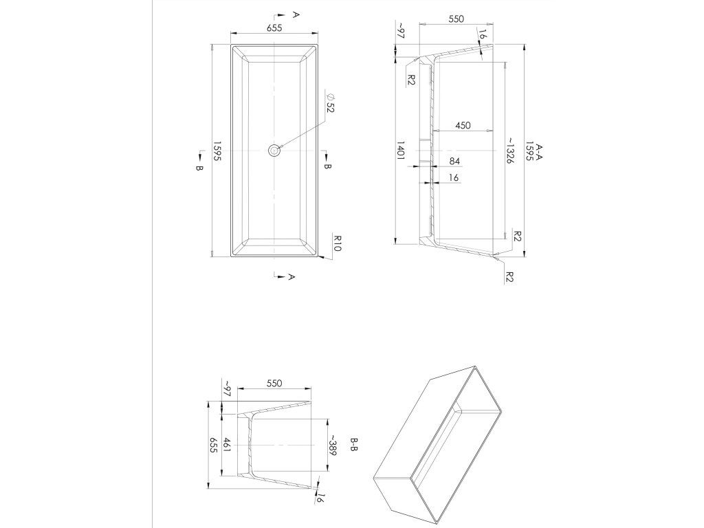 - rozměry vany - 160 x 65,5 x 55 cm (délka, šířka, výška)