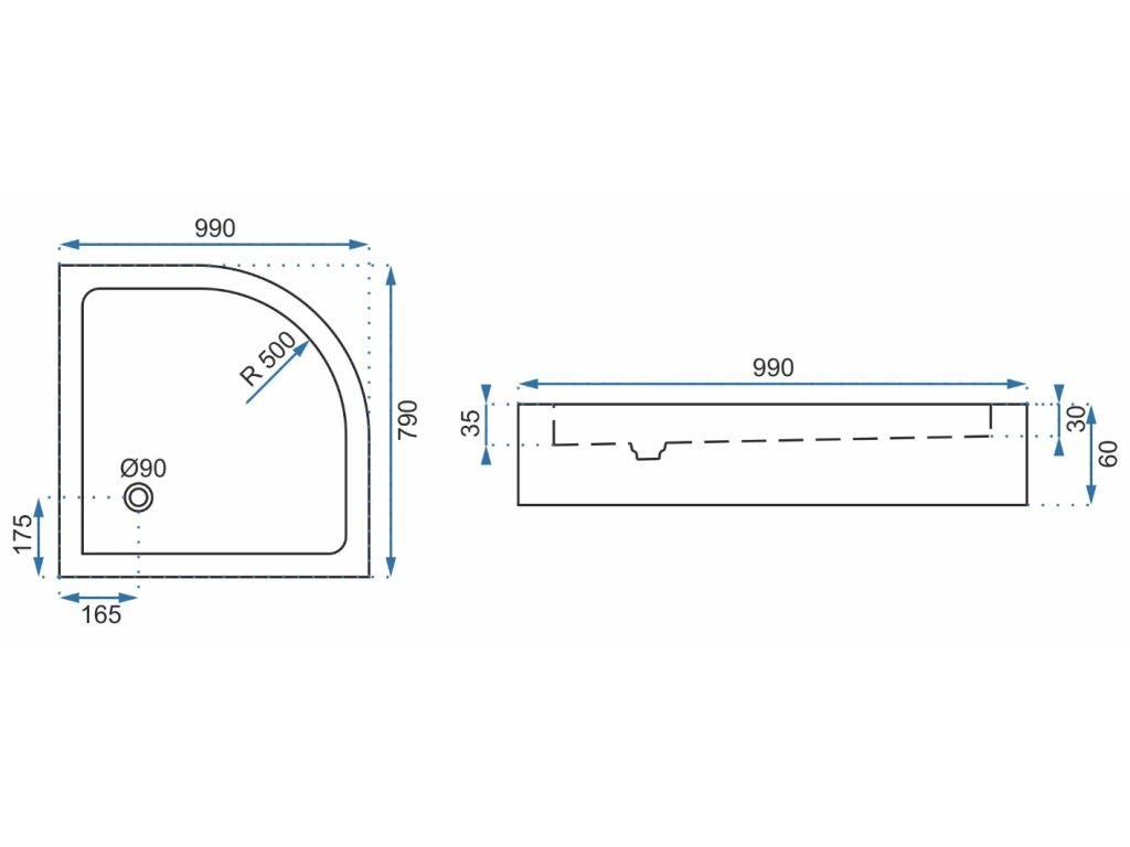 - sprchová vanička ve čtvrtkruhovém provedení