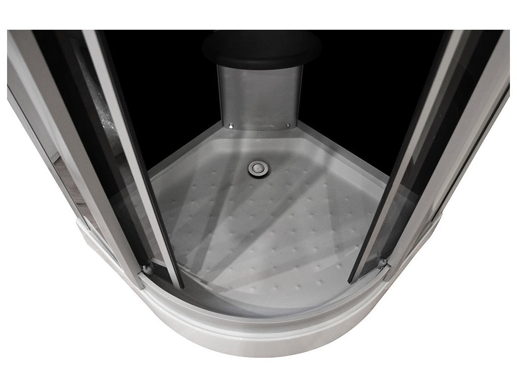 - moderní tmavé provedení čtvrtkruhového masážního sprchového boxu