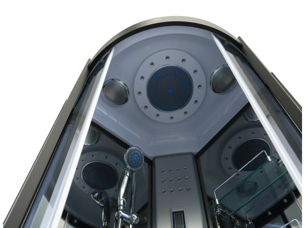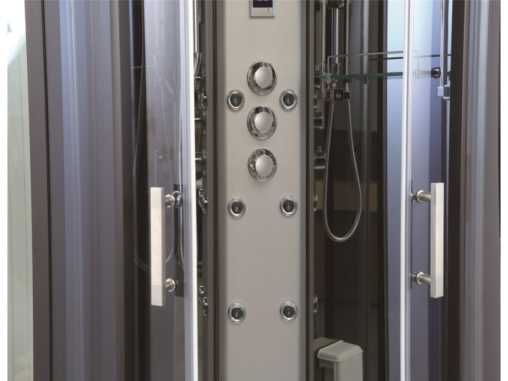 - moderní tmavé provedení čtvrtkruhového masážního sprchového boxu