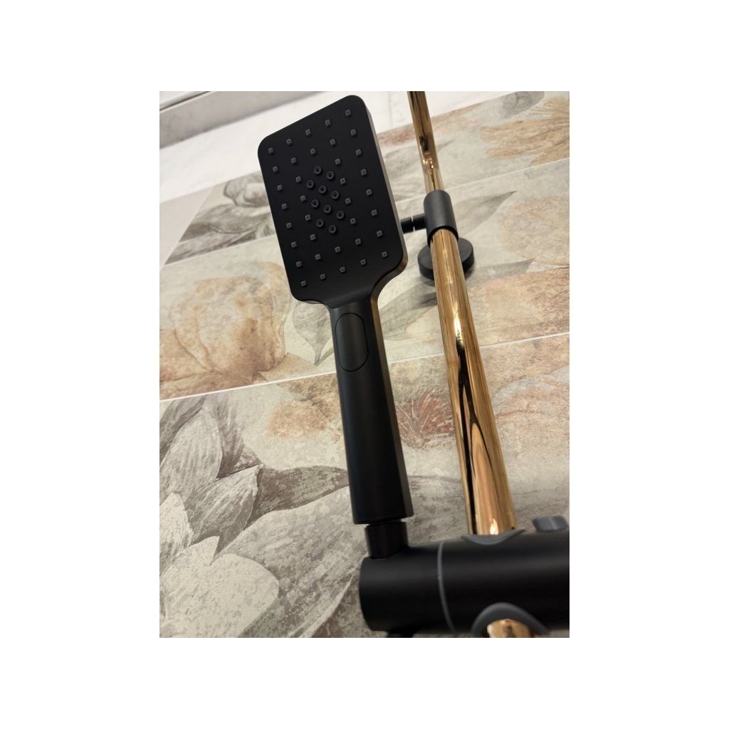 Vysoce kvalitní sprchový set s baterií Midy z mosazi v krásné černé a rose gold barvě je naprosto designový a elegantní kousek do Vaší koupelny. Kombinace dvou nejmódnějších barev v interiérovém designu nadchne každého. Matná černá a růžová zlatá je přesně to, co dokonale doplní design koupelny.