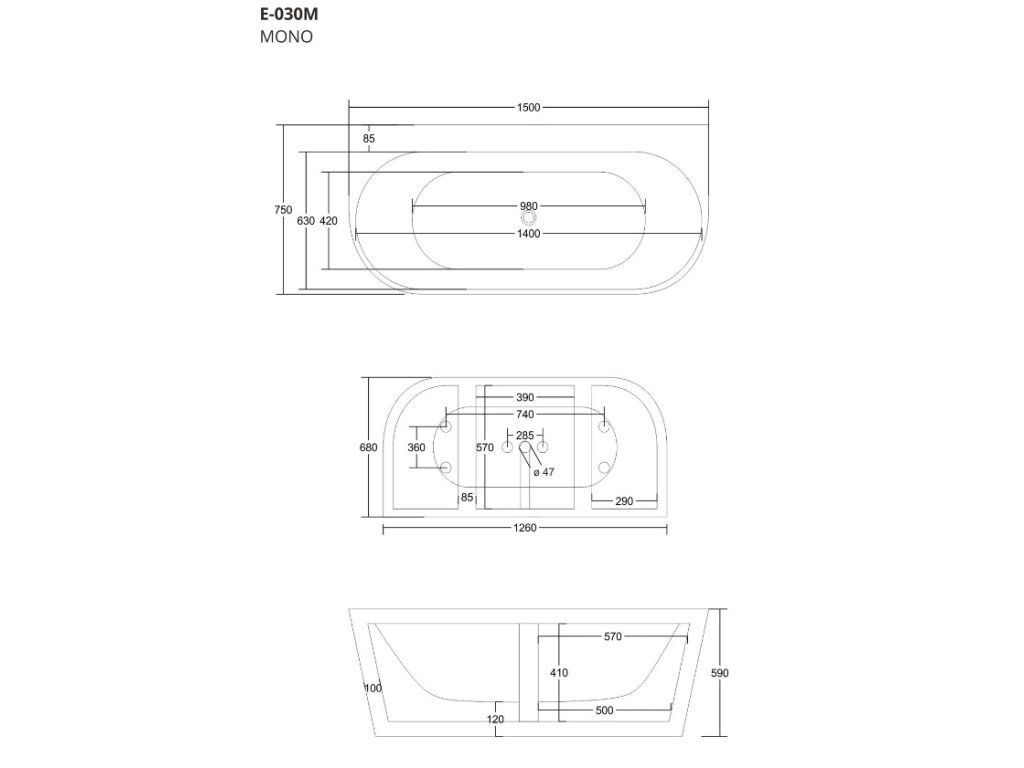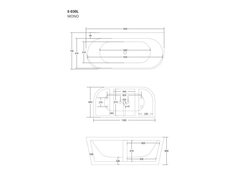 Specifikace volně stojící akrylátové vany Mono
