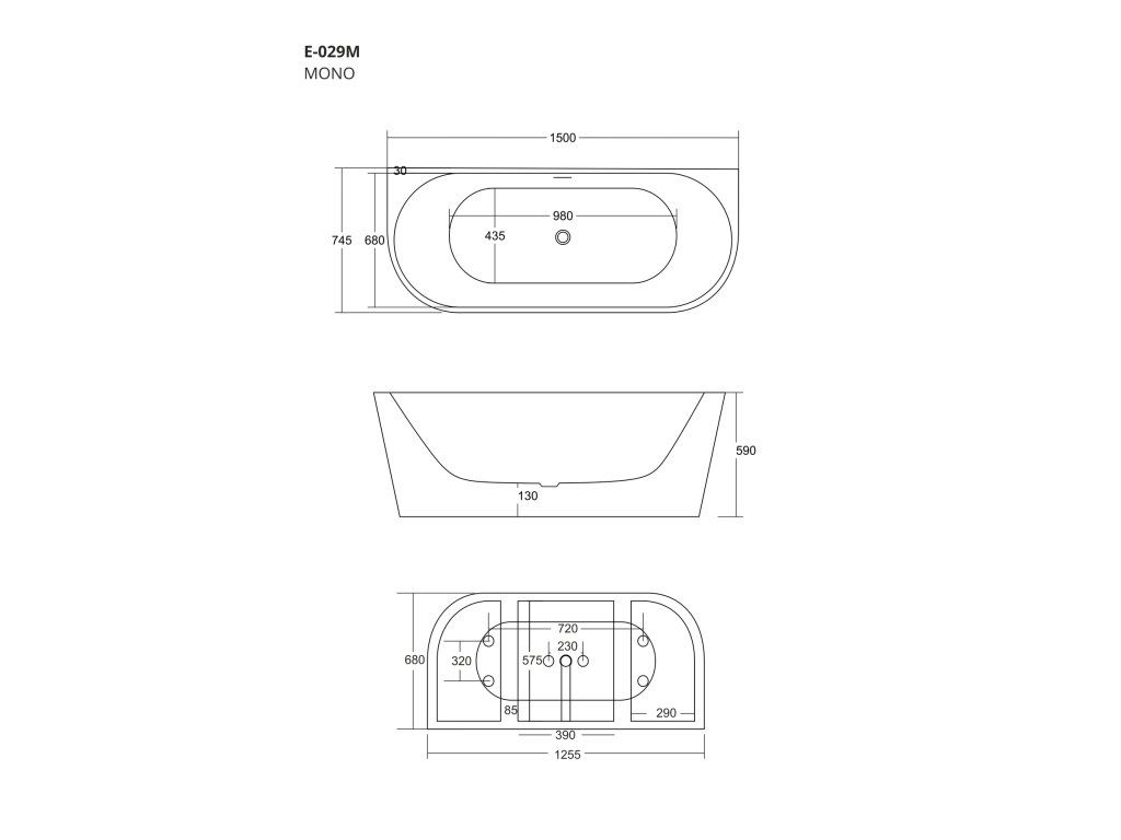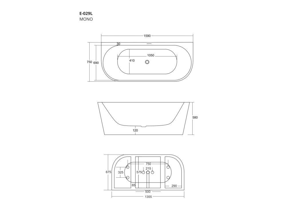 Specifikace volně stojící akrylátové vany Mono