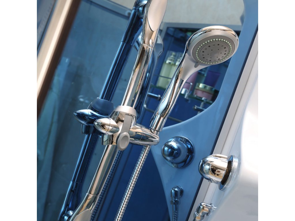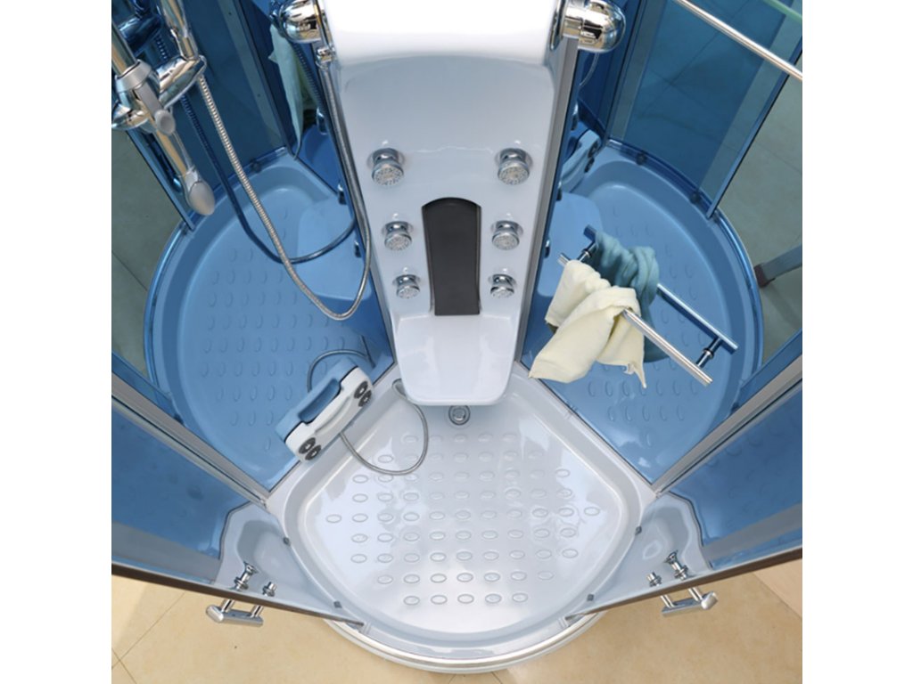 - moderní světlé provedení čtvrtkruhového parního sprchového boxu