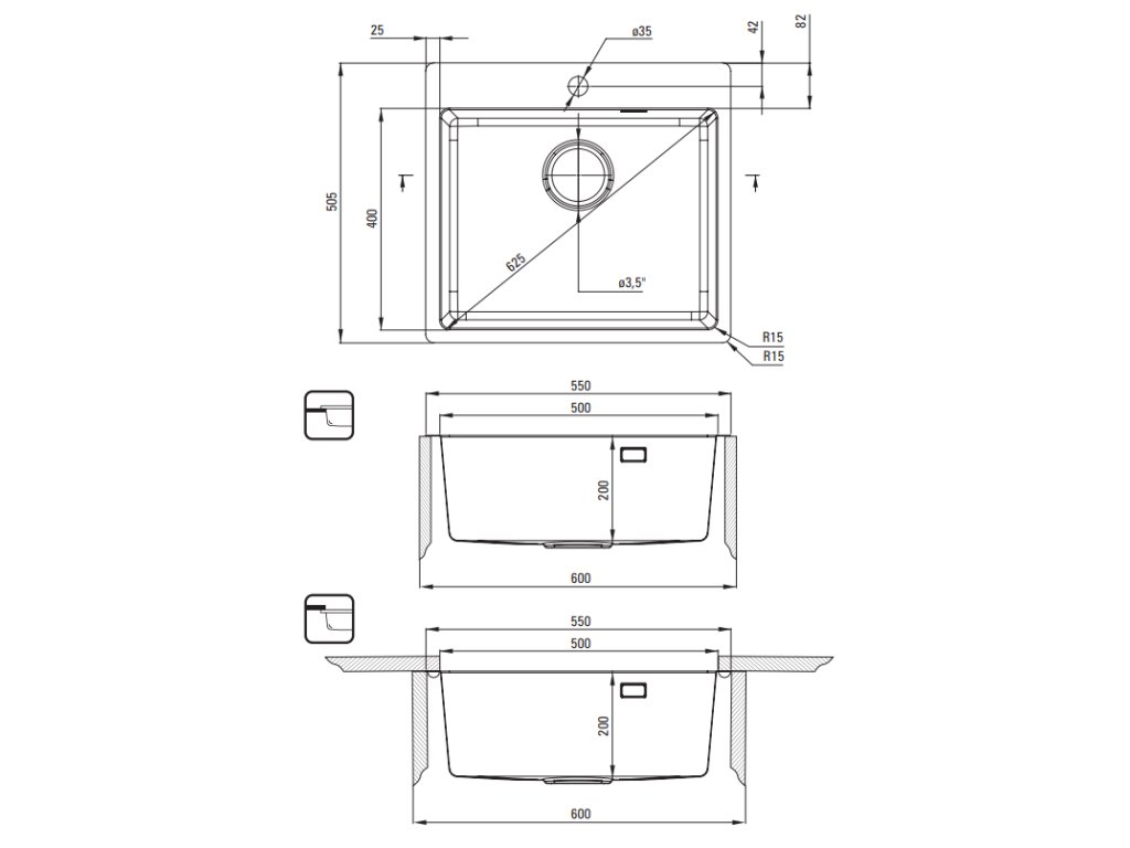 - instalace - v jedné rovině s deskou, zapuštěný, pod pracovní deskou