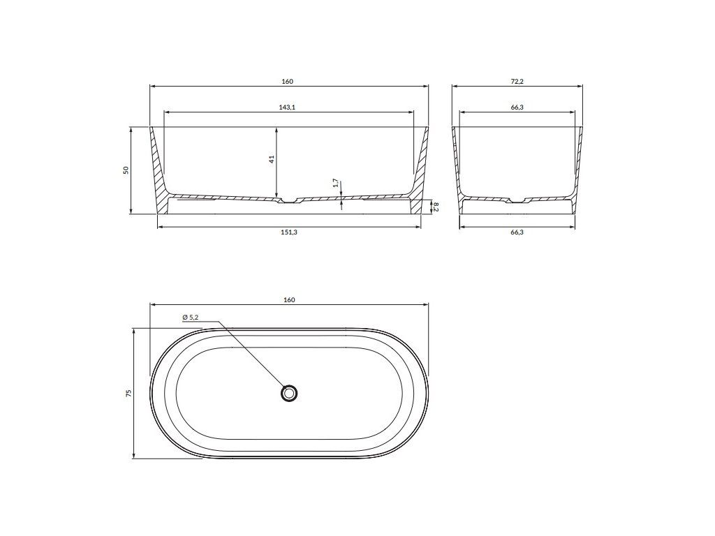 - rozměry vany - 160 x 75 x 50 cm (délka, šířka, výška)
