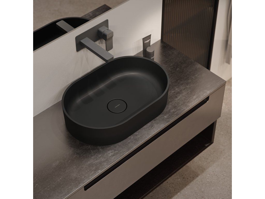 Aplomo Ovo M+ umyvadlo na desku z kompozitu, černý mat, OVOUNBLV