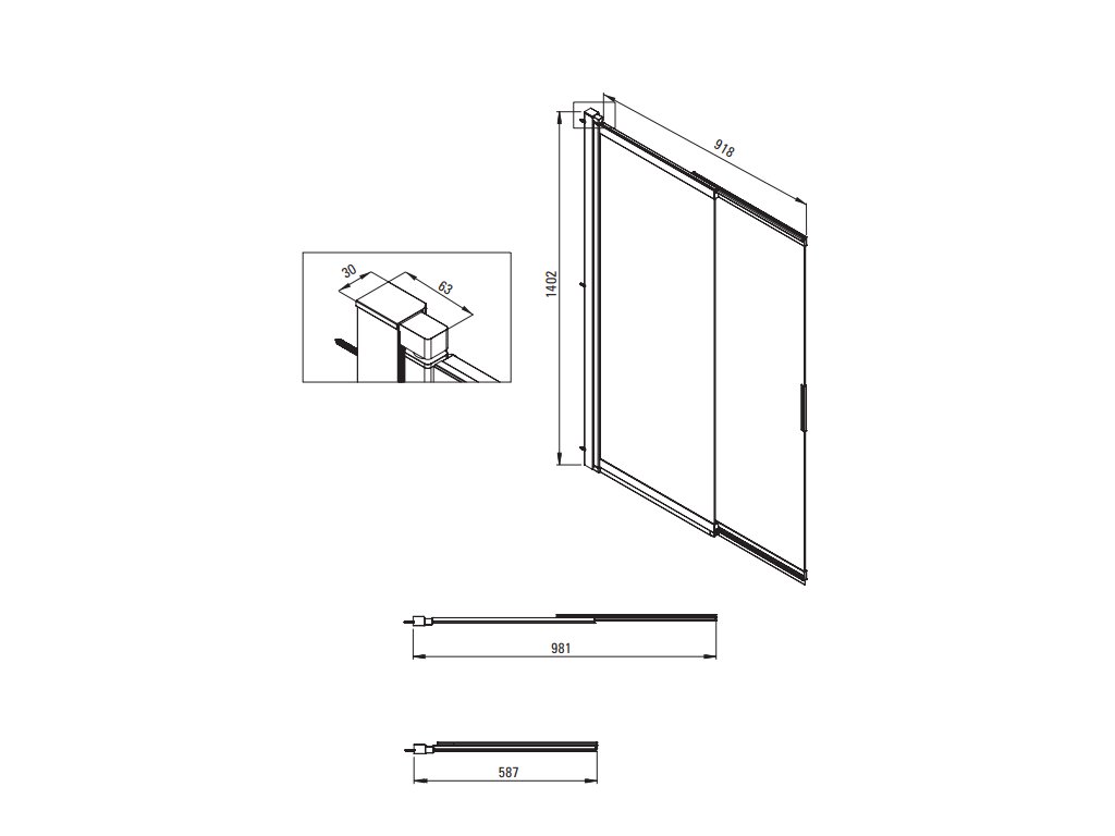 Aplomo Prizma 100x140 dvoudílná vanová zástěna, chrom, KTJ_073R