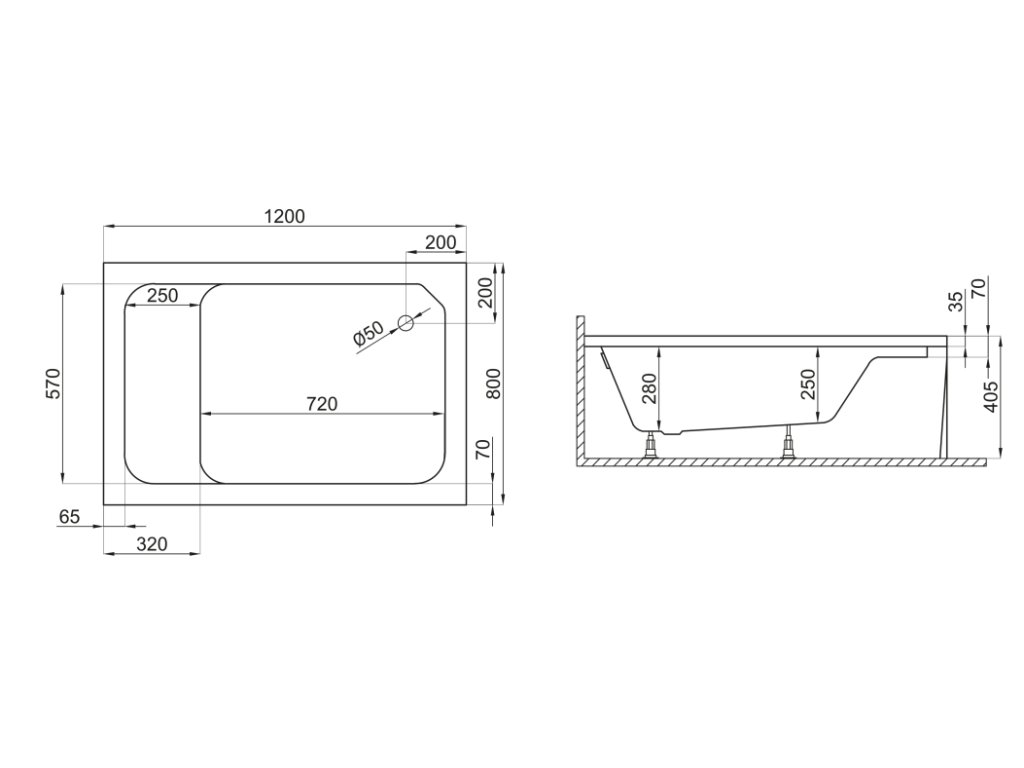 Velmi praktická a kvalitní sprchová vanička v obdélníkovém tvaru, vyrobena z kvalitního sanitárního akrylátu (vyztužen pryskyřicí).