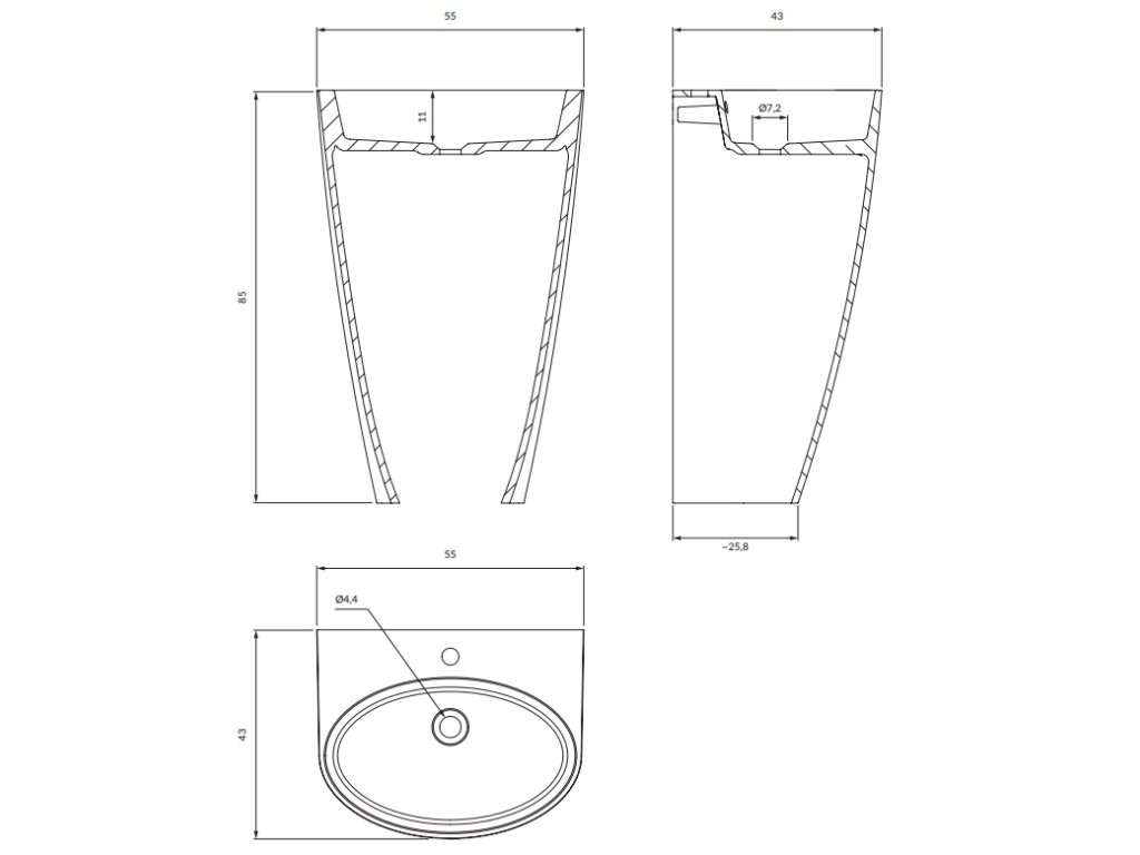 Jedinečné volně stojící umyvadlo vyrobené z vysoce kvalitního kompozitu. Díky jednoduchému a elegantnímu tvaru je ideální pro každou stylovou koupelnu. Skvělá volba pro ty, kteří chtějí vnést do své koupelny luxus. Díky nejmodernější technologii výrobního procesu působí umyvadlo nejen velice designově, ale je také snadno čistitelné a extrémně odolné.