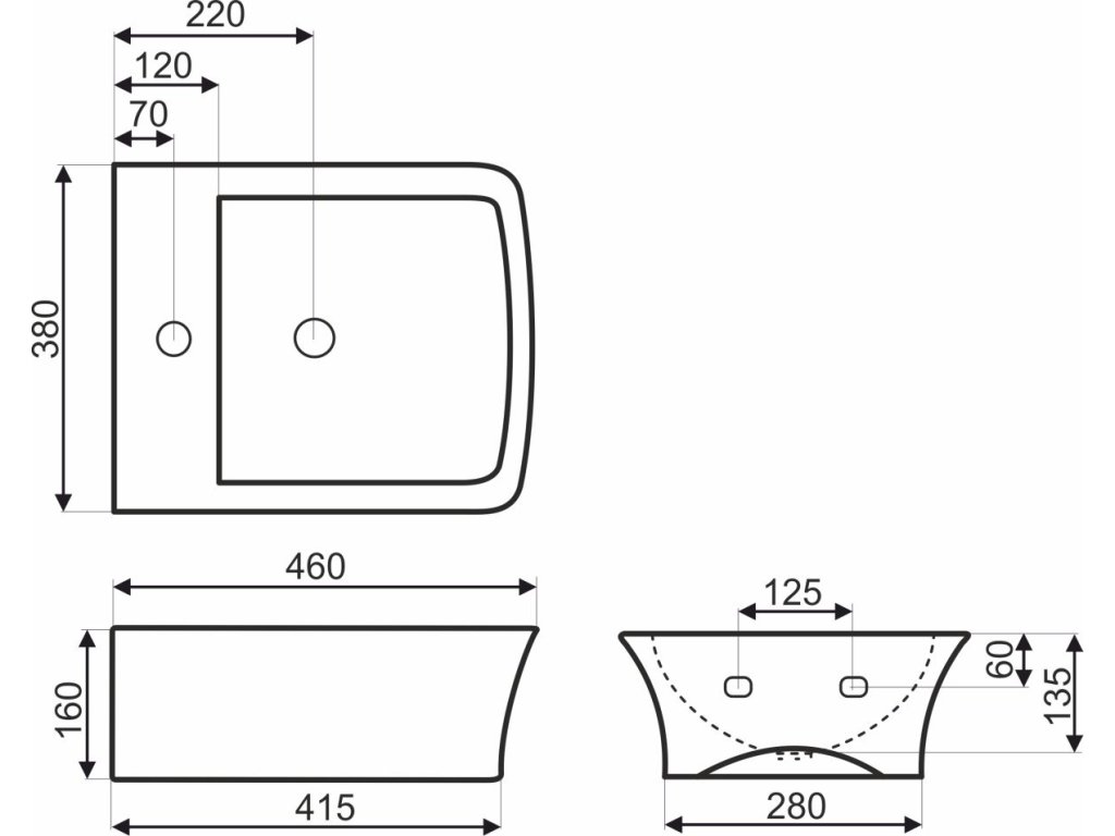 | Tvar umyvadla: | obdélník |