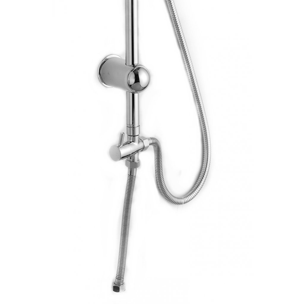 Tímto sprchovým setem Vaše koupelna získá na moderním designovém vzhledu, který mimo jiné zaručuje i ultra tenká kovová chormová ruční a vrchní hlavová sprcha. Jedna z dalších velkých výhod je snadná instalace, kdy sprchový set jednoduše připevníte ke stěně a propojíte na stávající baterii pomocí propojovací hadice (součást balení). V případě zájmu o baterii z naší nabídky přehled sprchových baterií zde