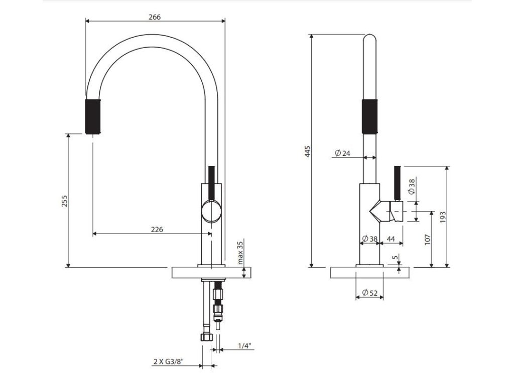 Baterie je vyrobena z vysoce kvalitní mosazi a je vybavena keramickou kartuší vynikající kvality, která nabízí technologii COLD START. To znamená, že proud vody pro mytí rukou a nádobí se standardně otevírá studenou vodou, což šetří energii a zabraňuje zbytečnému používání teplé vody. Svislá startovací poloha páky umožňuje instalaci baterie v blízkosti stěny, aniž by bylo nutné se starat o prostor potřebný k jejímu otočení pro otevření zdroje vody.