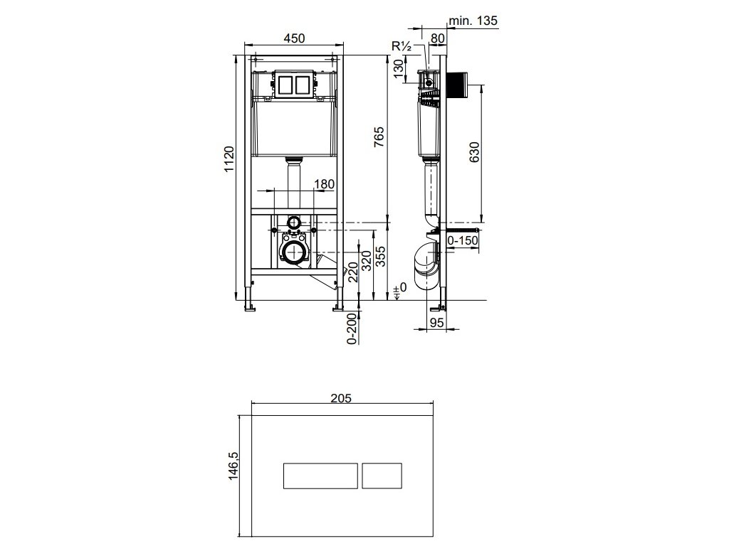 - celkové rozměry podomítkového rámu - 112–132 x 45 x 13,5–18 cm (výška, šířka, hloubka)