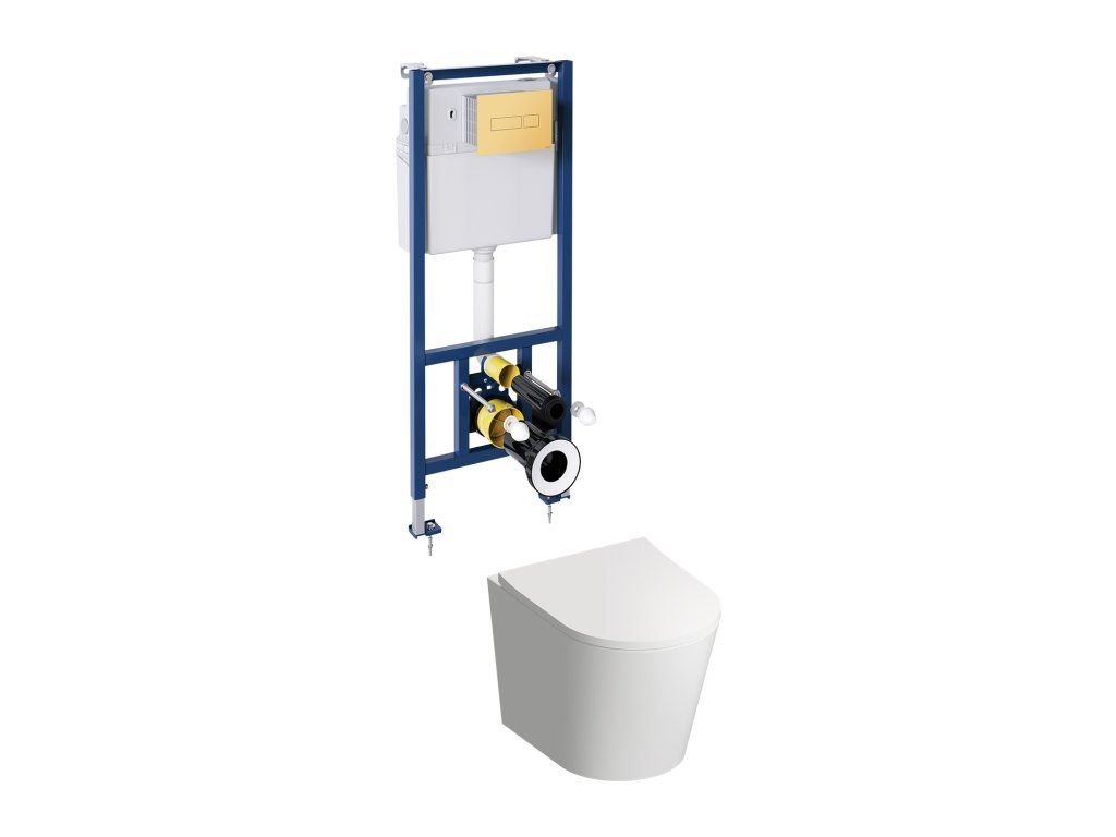 Aplomo Tampa WC závěsný komplet, zlaté tlačítko, TAMPASETBPGL