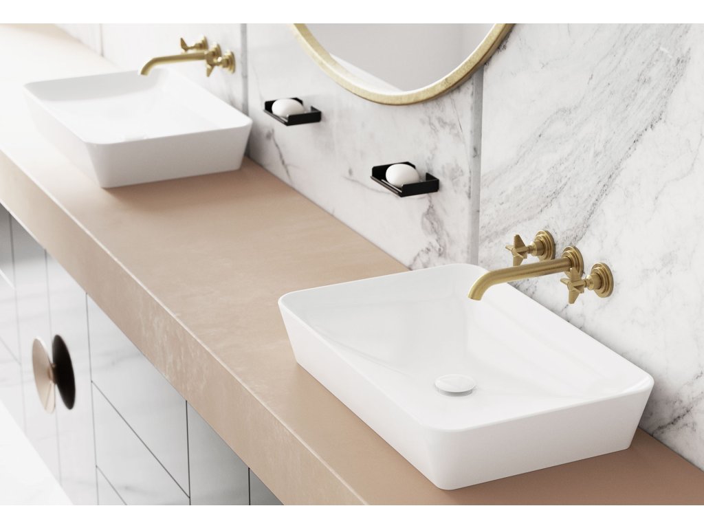 Podomítková umyvadlová baterie Temisto v luxusním mosazném odstínu je dokonalým příkladem toho, jak moderně pojatý retro styl bude fungovat v koupelnách zařízených v klasickém i minimalistickém stylu. Charakteristické stylizované knoflíky kolekce, připomínající vrtule letadel, se krásně snoubí se zaoblenou válcovou výtokovou trubicí. Baterie je vybavena hlavicí otočnou o 90°, která umožňuje rychlé nastavení zvolené teploty vody, a pohyblivým perlátorem, který provzdušňuje proud vody a umožňuje jej nasměrovat zvoleným směrem. Obě řešení jsou v souladu s ekologickou filozofií značky, která se zaměřuje na technologie snižující spotřebu vody. Zde vyobrazená podomítková umyvadlová baterie má luxusní mosaznou povrchovou úpravu, která nejen odkazuje na retro styl kolekce, ale díky inovativní technologii povrchové úpravy je také mimořádně odolná. Kolekce Temisto získala ocenění jako Must Have 2020, „Bathroom“ (Koupelna) a další. - volba roku 2020 nebo Top Design 2020, což zaručuje nejvyšší kvalitu výrobků a vynikající design.