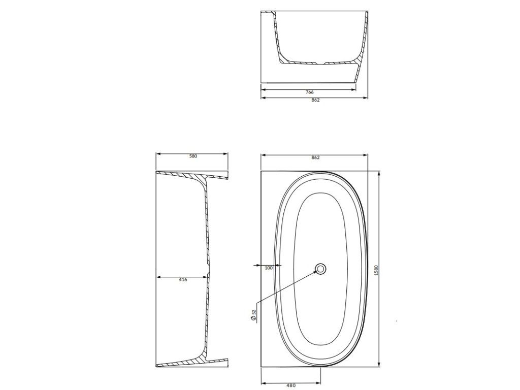 - rozměry vany - 158 x 86,2 x 58 cm (délka, šířka, výška)