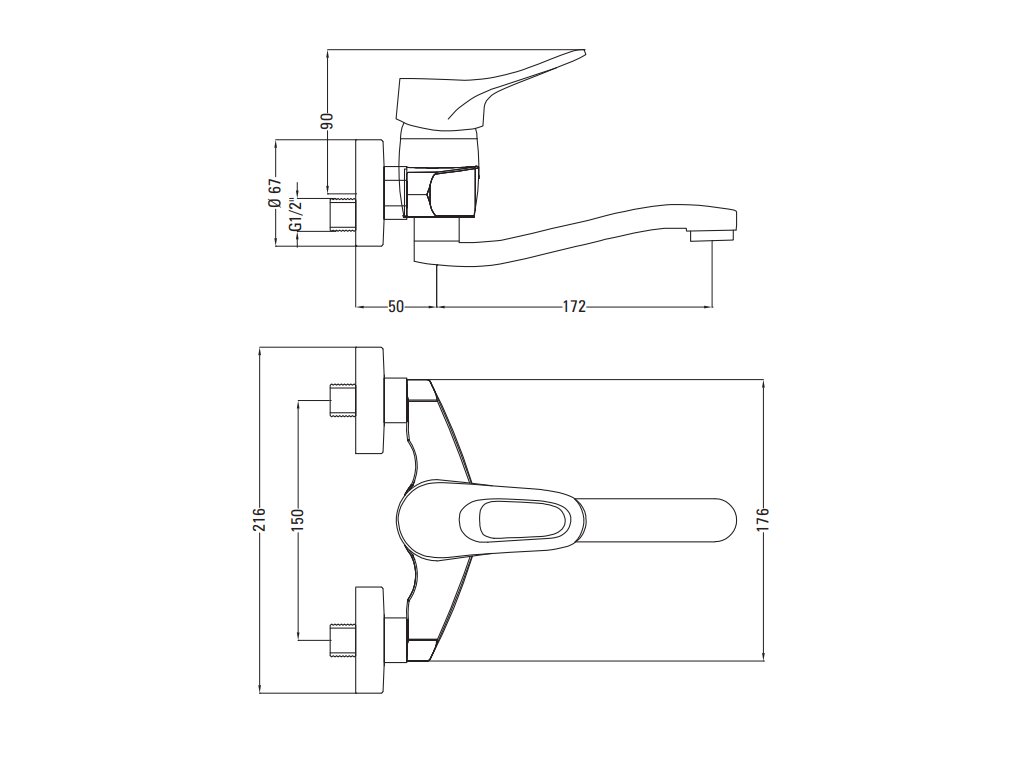 Aplomo Vero umyvadlová nástěnná baterie, BOW_050M