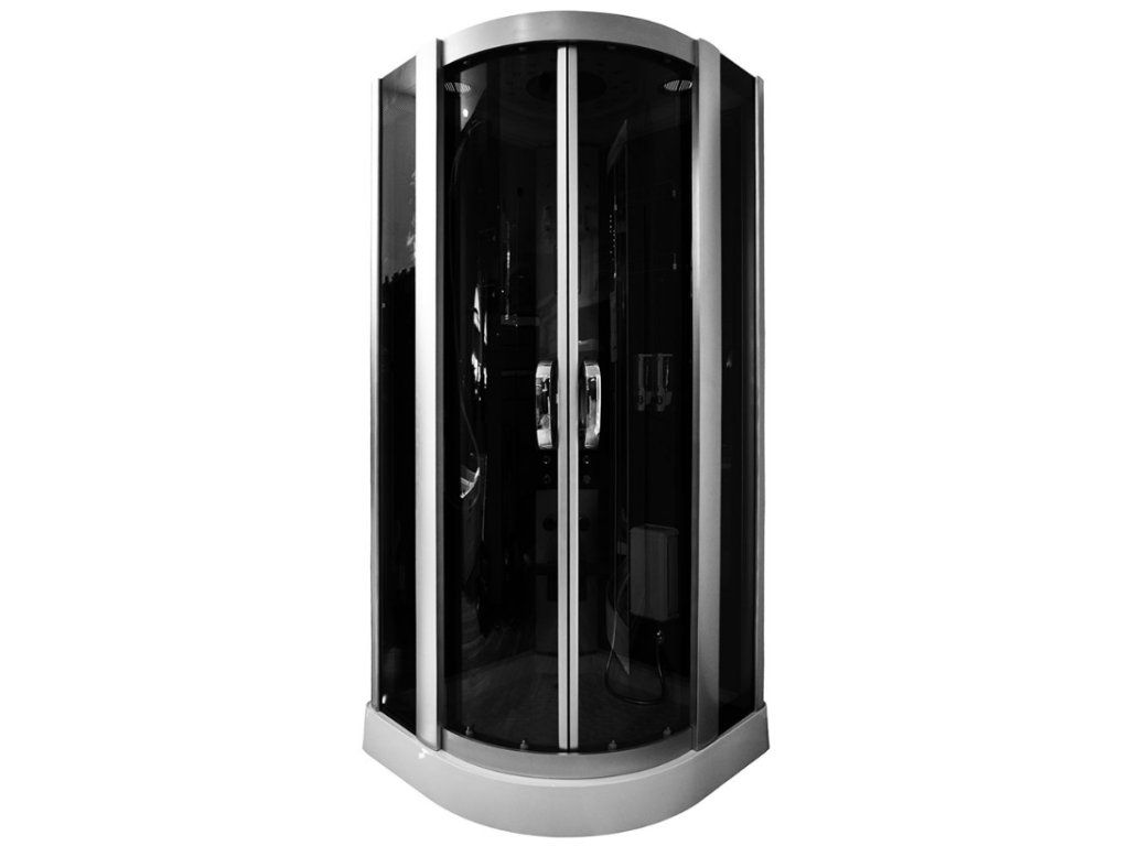 - moderní tmavé provedení čtvrtkruhového parního sprchového boxu