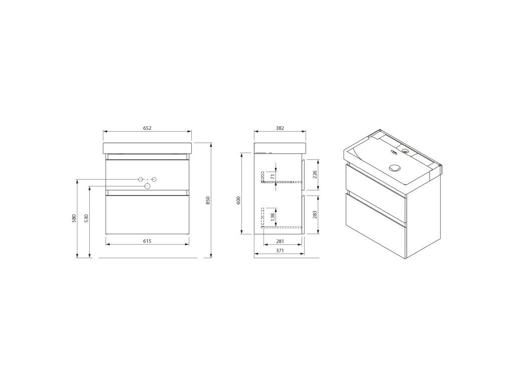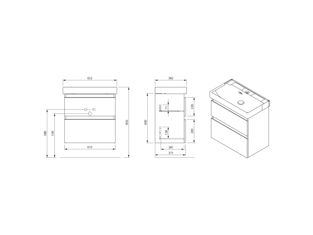 Aqualine ALTAIR umyvadlová skříňka 61,5x60x37cm, dub emporio AI368
