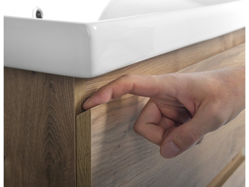 Nábytek je vybaven pojezdy zásuvek s pomalým dojezdem a systémem automatického dovření zásuvek. Již žádné hlučné dovírání.