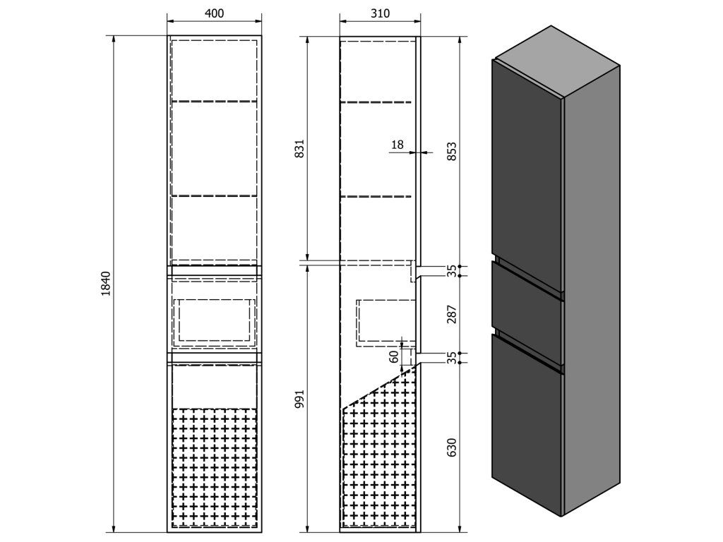 Aqualine ALTAIR vysoká skříňka s košem 40x184x31cm, černá mat, levá AI685L