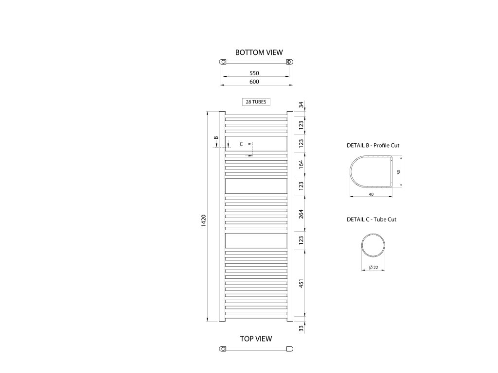 Aqualine ALYA otopné těleso rovné 600x1420mm, chrom LLR105