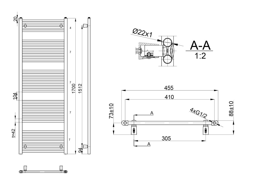 Aqualine DIRECT otopné těleso s bočním připojením 450x1700 mm, bílá ILR64E