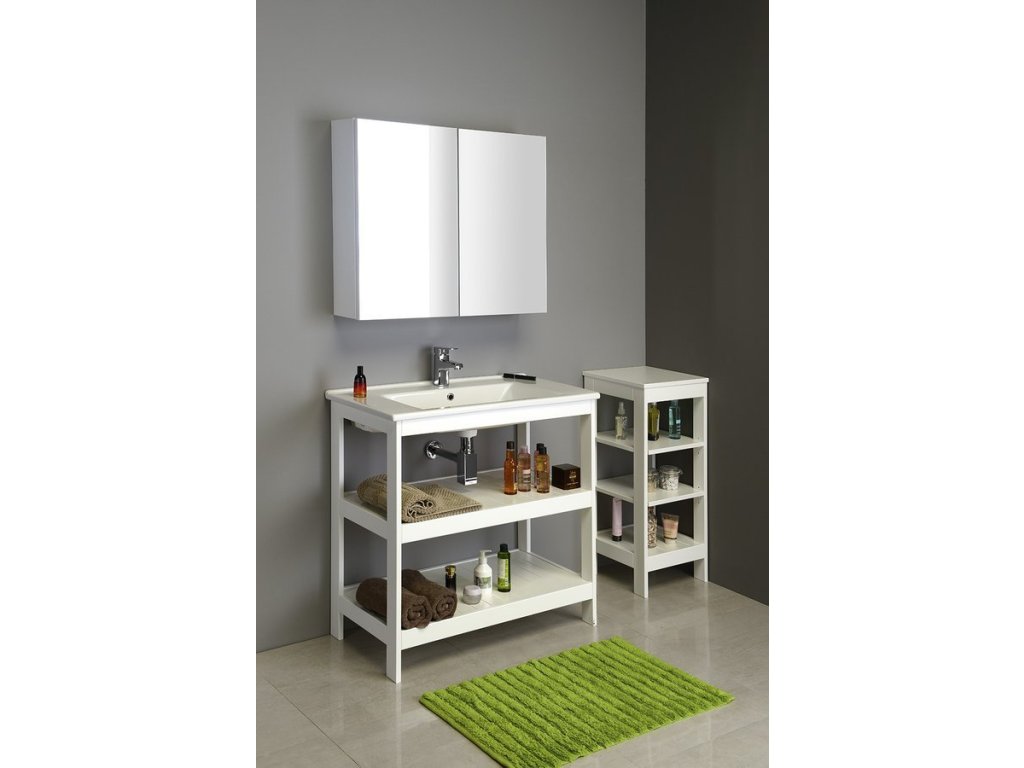 Umyvadlové skříňky doplňují koupelnové regály ve třech velikostech. Vysoký a nízký se čtvercovou základnou a nízký s obdélníkovou základnou. Regály lze postavit nejen v koupelně, ale i v jiných místnostech.