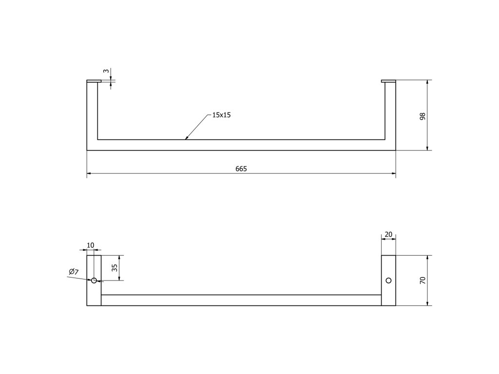 Aqualine HANG držák ručníků pod umyvadlo 665x98mm, černá mat HG665