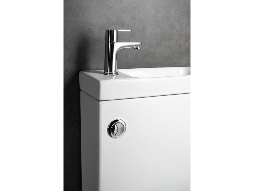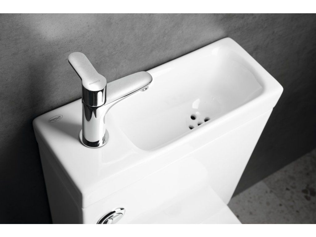 WC je ideální variantou do malých místností, kde je potřeba ušetřit prostor. Umístěním umývátka na nádržce dochází k šetření vody, která při mytí rukou protéká do nádržky, až do jejího úplného napuštění. V případě plné nádržky odtéká voda do mísy.