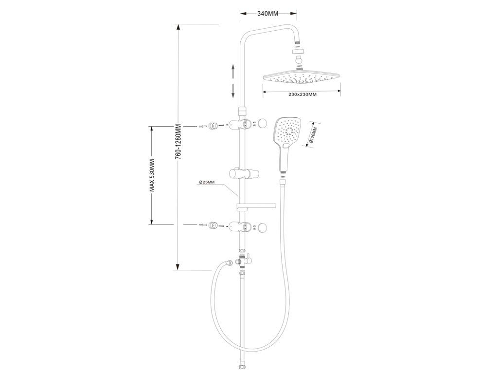 | Ostatní: | Nastavitelná výška sloupu;AntiCalc;Nastavitelná rozteč uchycení |